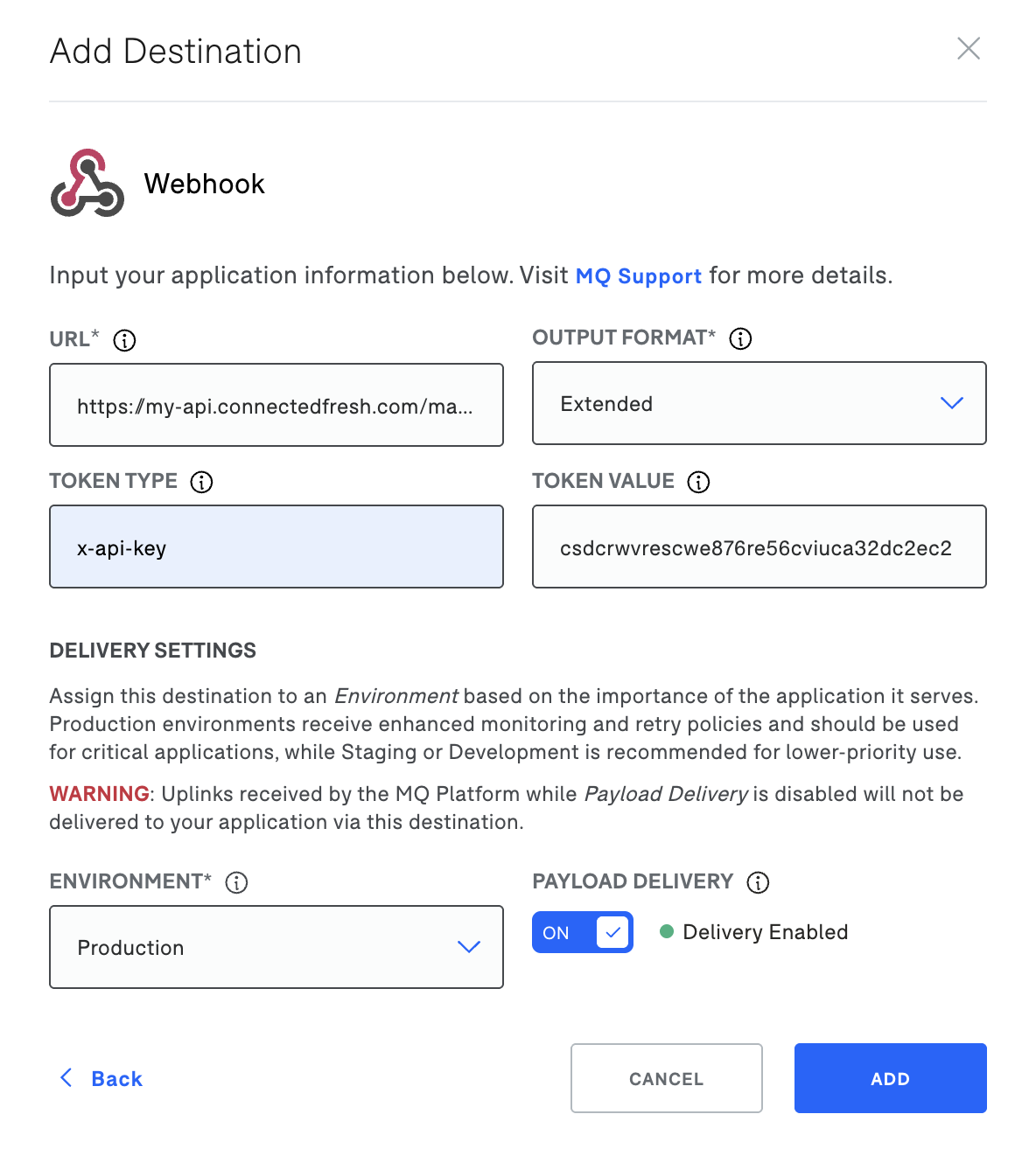 These credentials allow ConnectedFresh to securely authenticate incoming data from your MachineQ account.