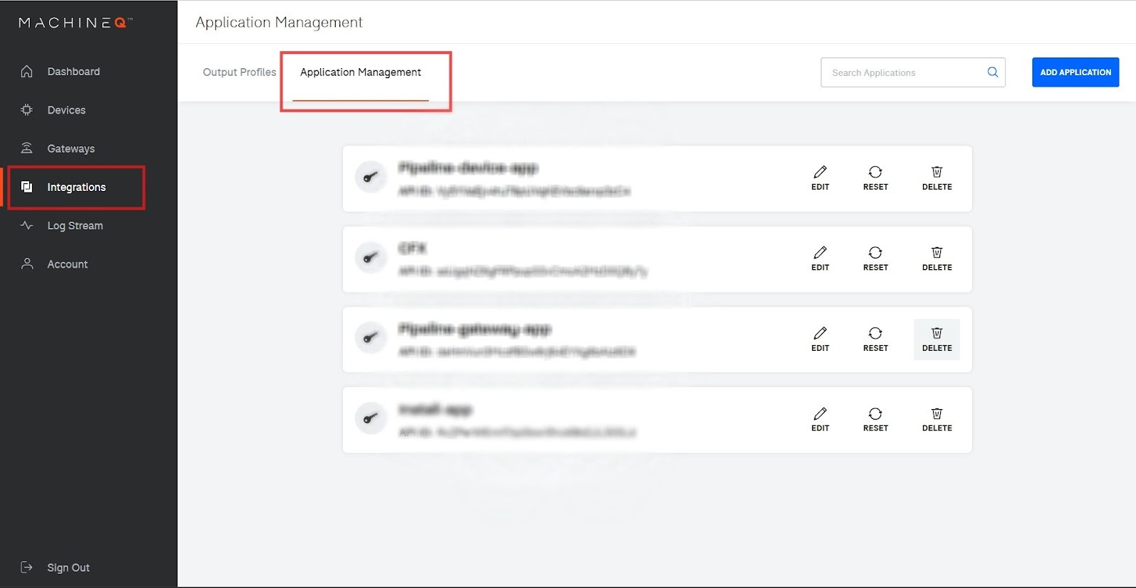 - MachineQ generates the Client ID and Client Secret in Application Management.